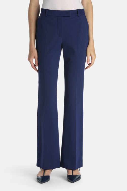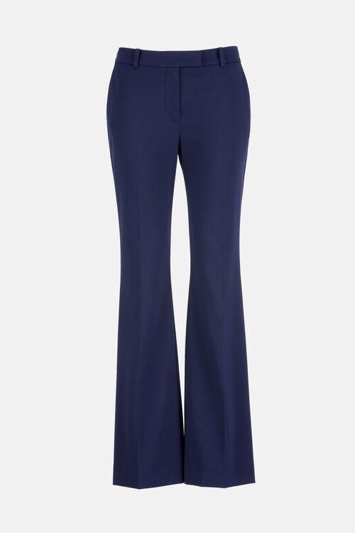 Contemporary volumes and tailored details combine in perfect harmony in this palazzo pant made from cotton denim and cashmere. Featuring a zipper closure and logo-ed button on the front, it also has practical pockets on the sides and back. The floor-length fit emphasizes the sleek and elegant silhouette, while the fabric gives the model a casual look.